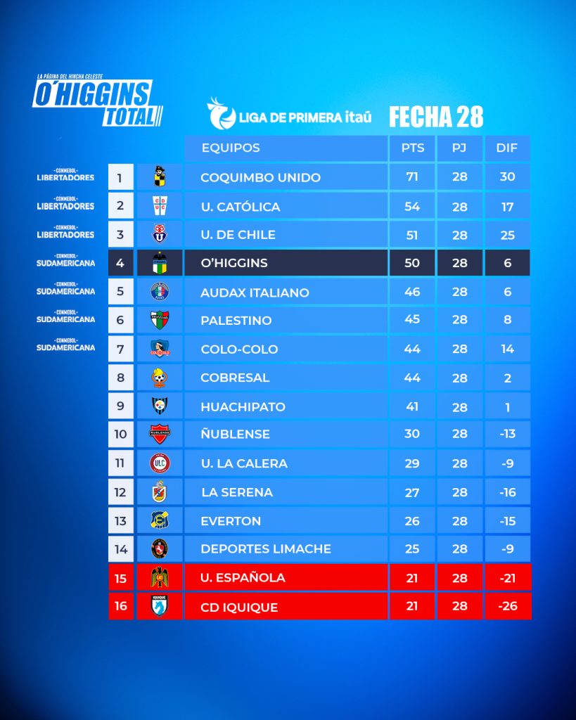 O’HIGGINS TERMINA EL INVICTO CRUZADO Y BUSCA EL CHILE 2